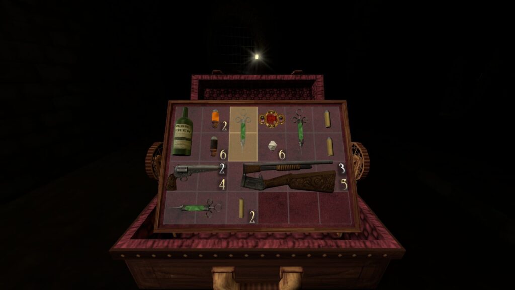 Vădit inspirat din jocurile seriei Resident Evil, inventarul interactiv al lui Gloomwood este o mecanică distractivă de care trebuie să te ocupi, vrând-nevrând. Cred că știi deja despre ce vorbesc (dacă ai jucat orice joc RE, cu precădere 4), ai o servietă și toate articolele din ea sunt afișate pe o grilă, unele ocupând mai mult spațiu decât altele. Fie că îți place sau nu o astfel de gestionare a inventarului, eu unul sunt cu siguranță un susținător al acesteia, după sutele de ore petrecute rejucând Resident Evil 4. Ai suficient spațiu pentru lucrurile de care ai nevoie, fără a fi prea constrâns, mai ales cu mărirea capacității servietei din noul update, dar tot trebuie să alegi ce păstrezi și ce arunci. Mi-a plăcut în special nota de realism adăugată prin faptul că trebuie să despachetezi fiecare glonț, în parte, dintr-o cutie de muniție, ca mai apoi să le încarci în cilindrul revolverului.