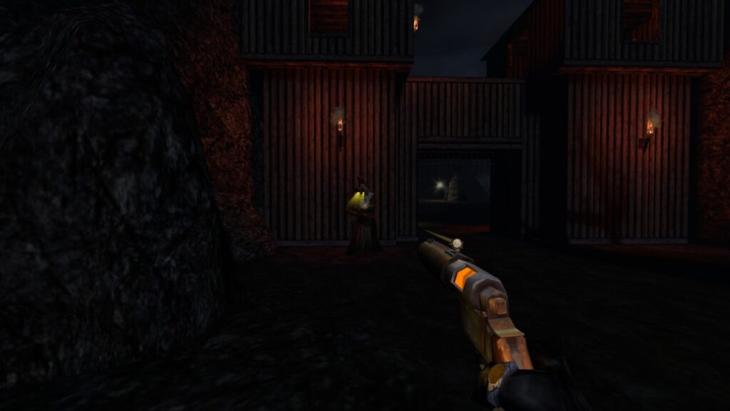 Da, există arme de foc. Dacă ești puțin explorator, ar trebui să poți găsi arme cu care să îți completezi arsenalul în Gloomwood. Un prim exemplu ar fi revolverul clasic menționat mai sus, care elimină gărzile din câteva focuri, de la o distanță rezonabilă. Este util, dar și gălăgios, așa că ai de făcut un compromis. Cu toate acestea, nu este nici pe departe la fel de zgomotos precum shotgun-ul care spulberă în bucățele gardienii. Mai poți găsi un pistol cu amortizor, total silențios, cu muniție interschimbabilă, foarte util pentru situațiile mai delicate, căci lipsa muniției nu-ți permite să te distrezi prea des cu el. Ai și capcane pe care le așezi pe jos și speri să se împiedice vreun nefericit în ele, iar cu noul update ai și un harpoon gun care poate fi folosit ca unealtă de ucis sau ca lansator de tiroliană. Sper ca inventarul să cuprindă mai multe arme pe măsură ce Gloomwood va fi actualizat, căci s-ar deschide o mulțime de posibilități de gameplay prin adăugarea de noi arme în joc, așa că sunt sigur că producătorii s-au gândit și la asta.