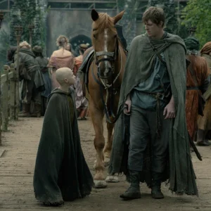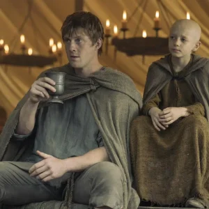 Noua serie debutează cu o înmormântare minimalistă, unde ex-scutierul Dunk are niște amintiri duioase din copilărie și regretă absența unui septon pentru o cuvântare de natură spirituală. Dunk e în limbă să devină cavaler, drept pentru care își pune o mulțime de întrebări, care îi generează o grămadă de dileme ce dau naștere altor dileme. Nu începe bine să curgă arhicunoscuta temă muzicală din Game of Thrones, când, glorioasa și epica muzică se oprește brusc și îl vedem pe acest sfert de Nilă Moromete al Westerosului în spatele unui copac, scremându-se să ducă la bun sfârșit o treabă pe cât de mare mare pe atât de apoasă. Parcă îl văd pe bunicul Martin tăvălindu-se de râs, imaginându-și figurile fanilor la vederea scenei! Mesajul simplu, de natură scatologică ne-o spune foarte clar: noul serial se va concentra pe vieților unor oameni comuni din Westeros și, după cantitatea de flegme scuipate și galeria de femei de moravuri ușoare, pare că ia o turnură de Carmina Burana în versiunea vulgară (de tavernă) a celor de la Clemencic Consort, în contrast cu Game of Throns sau House of the Dragon, care o dădeau mai degrabă într-o versiune Carl Orff, de cameră. Evenimentele au loc cu un secol înainte de cele din Urzeala Tronurilor, dragonii au dispărut, dar Targaryanii sunt încă la putere.