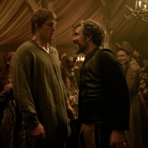 Aminteam mai sus de contrastele din filmul lui Ira Parker: de la statura masivă a celui care se autointitulează Ser Duncan the Tall la micimea lui Egg (interpretat de un puști cu talent cât carul – Dexter Sol Ansell), de la autenticitatea lui Dunk, prin credința sa oarbă într-un mit feudal mort de multă vreme, la cavalerii care nu dau două parale pe onoare și pentru care distracția este totul. Dar, pe lângă contraste, unul dintre elementele cheie este chimia dintre Dunk și Lyonel „The Laughing Storm” Baratheon, cum era cunoscut vajnicul strămoș al lui Robert Baratheon și unul dintre cei mai puternici cavaleri ai epocii. Și-a câștigat numele de „Laughing Storm” datorită obiceiului său neobișnuit de a izbucni în hohote de râs în timpul turnirurilor sau luptelor, mai ales atunci când un adversar reușea să-i atingă scutul. Este un uriaș vesel, iubitor de petreceri, un spirit liber care trăiește pentru adrenalina luptei. În scenele în care apare, îl vedem cum face eforturi să fie auzit, nu-și găsește cuvintele, iar despre discursuri nici că poate fi vorba. În locul unui duel cu sabia, el îi propune lui Dunk un duel în dans, ambii devenind doi copii de statură considerabilă care se joacă împreună, conversează ca și cum ar fi egali (îl vedem pe Dunk purtând coroana de lemn a lui Lyonel ca și cum aceasta ar fi un obiect vestimentar amuzant) și, astfel, se oglindesc unul în celălalt.