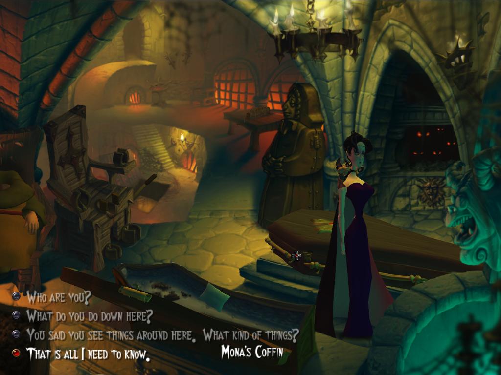 Ne aflăm în Trans… pardon, Draxsylvannia. Aici, povestea se învârte în jurul protagonistei, pe numele ei Mona DeLaffite. De când era fetiţă, avea o voce încântătoare, adorată de toţi cei din jurul ei. Visul ei era acelaşi de a cânta la opera de la Paris, vis ce începea să îl urmeze cu sfinţenie. Până în momentul în care dă de misteriosul Conte Shrowdy. Contele, desigur, era un vampir, ce a transformat-o şi pe ea într-un „hominis nocturna”. Ca pachetul să fie complet, acesta a răpit-o pe biata tânără şi a închis-o în castelul său. Mona, refuză să creadă că este vampir, în ciuda tuturor semnelor evidente din jur. Preferă să doarmă într-un sicriu. Nu mai consumă nimic înafară de un vin misterios adus de Shrowdy, şi aşa mai departe. Singurul ei prieten de nădejde este adorabilul liliac pe nume Froderick. Vă avertizez, s-ar putea să vă ataşaţi mai mult de Froderick decât de Mona, datorită umorului extrem de rafinat şi plin de referinţe pop-culture. Aventura noastră începe în momentul în care Mona se satură de viaţa în captivitate, îl ia pe Shrowdy şi purcede către visul ei de a cânta pe scenă la Paris. În decursul aventurilor sale, Mona şi Froderick vor da peste tot soiul de personaje carismatice. Vreau totuşi să enumăr, în afara contextului, câteva NPC-uri doar ca să vă daţi seama cu cine aveţi de-a face: Doctorul Riga Mortis, Madame Strigoi, vârcolacul Carpatia, corbul Edgar Raven, şi nu în ultimul rând, statuia de piatră foarte „stoned”, dacă înţelegeţi ce vreau să spun, denumită Ozzy. Dialogurile între Mona şi Froderick sunt atât de suculente încât niciodată nu o să vreţi să apăsaţi butonul de Skip. Sper că v-am făcut poftă… de hemoglobină.