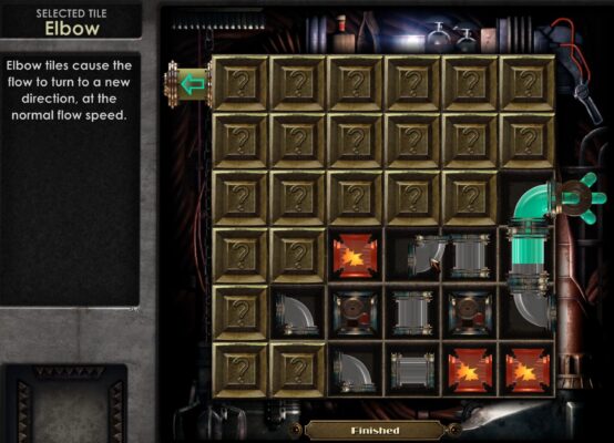 Practic, pentru a trece de astfel de puzzles, nu e necesar să fim mari hackeri; dar ajută dacă suntem instalatori, presupun. Pentru că toate aceste “hacks” funcționează la fel: de undeva începe să curgă un lichid verde, iar tu trebuie să construiești un fel de conductă prin care să curgă lichidul ăla până la punctul ăla marcat cu săgeata verde (în cazul asta, stânga sus). Doar că o mare parte din puzzles încep din poziții relativ imposibile. Nu poți pune o bucată de conducta pe un  tile nedescoperit încă. Dacă duce la un alarm tile sau la un overcharge tile, la revedere, ai pierdut. Iar lichidul ăla curge ca dintr-un tânăr beat, nu ca dintr-un domn între două vârste cu probleme la prostată. Desigur, poți să-ti îmbunătățești abilitățile de hacker-instalator în timp, astfel încât să ai mai puține tiles cu capcane; să curgă mai lent lichidul ăla. În realitate, însă, dacă ai decis că vrei să “hack” ceva, ar fi bine să salvezi înainte. Și s-ar putea să cam dai cu save și load de vreo 20 de ori, în funcție de noroc sau de ghinion.