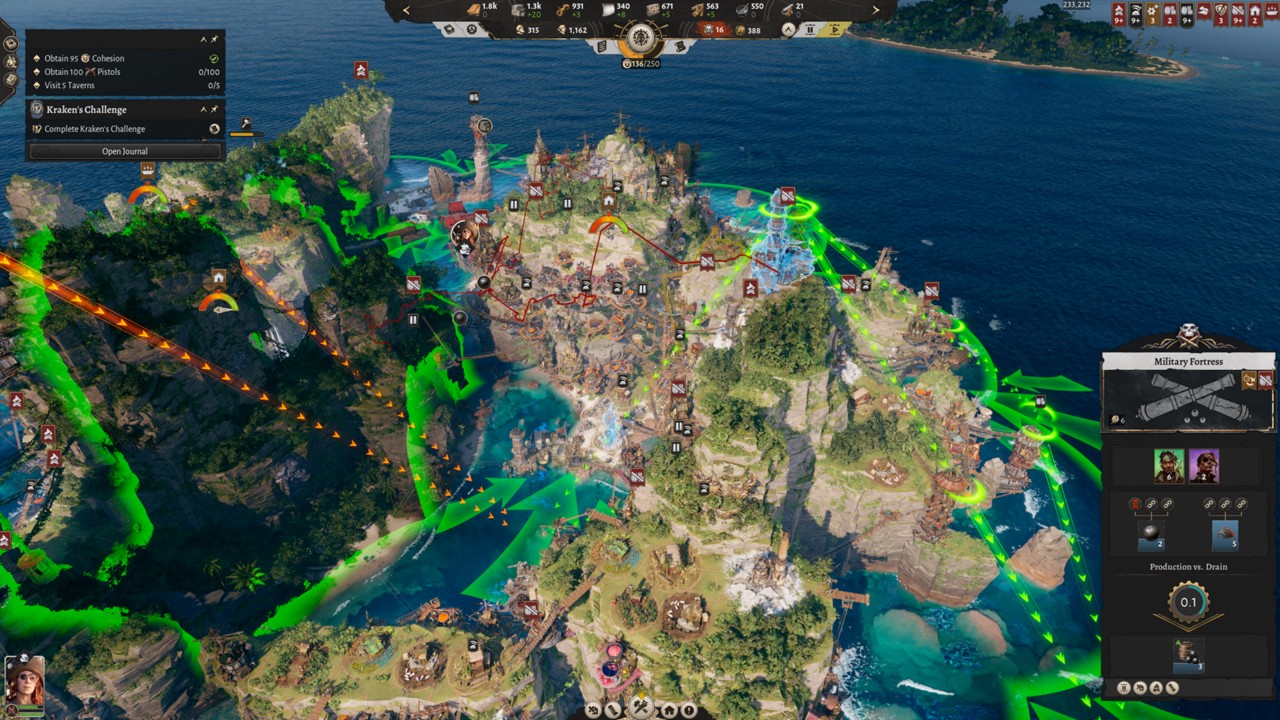 Ca un căpitan de pirați cu simț de răspundere, te trezești în fruntea unei colonii tribale căreia trebuie să-i asiguri supraviețuirea. Culmea ironiei, prima lor dorință arzătoare este berea, căci se pare că romul de altădată e istorie, iar pirații noștri s-au mai înmuiat între timp. Desigur, teoretic ar mai avea nevoie și de niște țoale, plasturi pentru ochi sau săbii ascuțite, dar astea-s amănunte plictisitoare. În lumea lor, dacă nu curge berea, degeaba ai sabie, că n-are cine să o mânuiască cu skill! Construirea de poduri, tiroliene și lifturi va fi esențială pentru transportul eficient al mărfurilor în lanțuri de producție complexe care acoperă peste 50 de tipuri de mărfuri. Va trebui să construiești și să echipezi nave de război puternice cu care să explorezi mările din jurul insulei, dar și să-ți aperi sărăcia, nevoile & neamul de cei care încearcă să-ți distrugă modul tău de viață tihnit. Comunicatul de presă ne informează, de asemenea, că jucătorii vor trebui să participe la misiuni pentru a-și dezvolta compania de-a lungul a patru axe: Faimă, Imperiu, Navigație și Bogăție, fiecare deblocând misiuni, clădiri și nave unice.