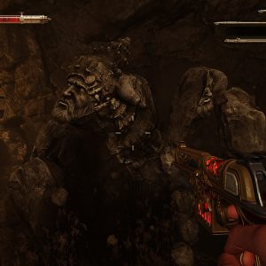 Doar că lucrurile scapă rapid de sub control, insula nu e doar plină de tensiuni religioase, ci și de manechine din lemn care se trezesc la viață și decid că tu ești următorul lor coleg sculptat. După ce prima întâlnire cu unul dintre inamici te face una cu podeaua, Zeul Soare intervine și îți oferă un „dar” divin… îți poți transforma propriul sânge în muniție. Depinde de fiecare cum vede blagoslovenia asta, ori povară ori beneficiu. Dar conceptul e mișto, în teorie, pentru că fiecare reîncărcare îți mănâncă din viață, ceea ce ar trebui să transforme fiecare glonț tras într-o decizie serioasă. Tragi sau păstrezi sănătatea?