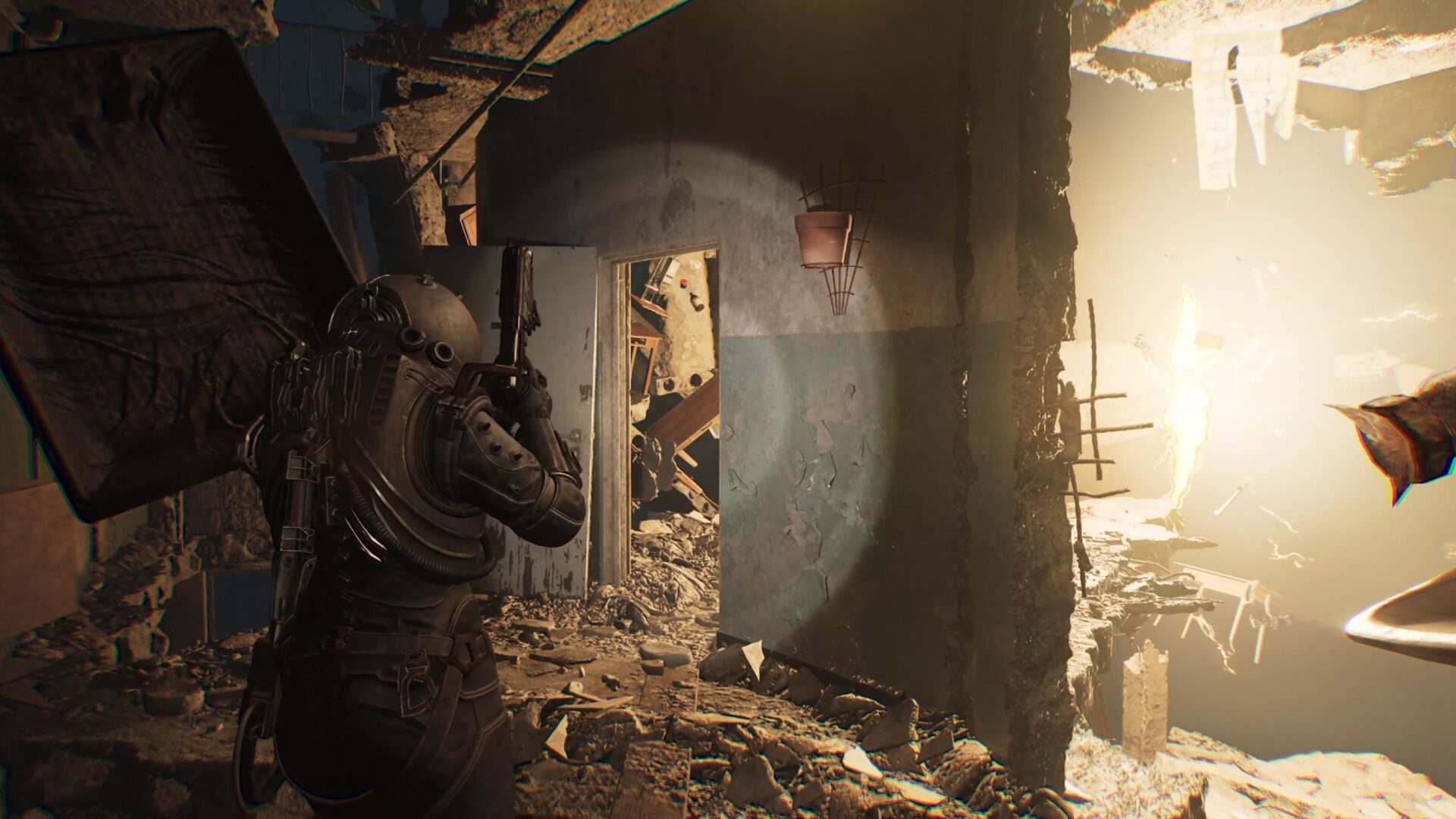 Mecanica de luptă este bine construită. Ca Traveller, ai acces la un set restrâns de arme, de la pistoale la carabine și shotguns, fiecare cu propriile avantaje. Costumul masiv pe care îl porți îți limitează mobilitatea și contribuie la senzația de greutate și vulnerabilitate. Nu ești agil și nici supranatural de puternic, dar poți ocoli atacurile și contraataca dacă ești atent.
