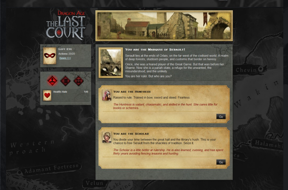 Dragon Age: The Last Court a fost lansat în 2014 ca un fel de punte între Dragon Age 2 și Dragon Age: Inquisition și oferea o experiență narativă bazată pe colectarea de resurse, în care fiecare decizie luată de player putea influența finalul jocului. Jocul a fost conceput ca un browser game gratuit, oferit prin intermediul platformei Dragon Age Keep, dar a fost retras fără prea multe explicații de EA în 2020. Ei bine, recent, un fan înfometat a căutat prin gunoiul celor de la EA și a găsit acest joc, pe care l-a resuscitat imediat.