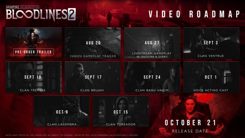 În cadrul festivității de deschidere a Gamescom, The Chinese Room a anunțat data apariției lui Vampire: The Masquerade – Bloodlines 2: 21 octombrie 2025. Trailerul de prezentare este bine realizat, cu scurte secvențe de gameplay și o pendulare între acțiune și narațiune. Pe PC și console, ediția standard a lui Bloodlines 2 va costa 60 euro. Lucrurile se complică, ba chiar devin greu de digerat, în momentul când vedem restul edițiilor anunțate de Paradox Interactive: Ediția Deluxe va costa 70 euro și va conține un pachet cosmetic „Santa Monica Memories”, ca să-ți decorezi refugiul când joci visând la vechiul VTM din 2004. Frecție la piciorul de lemn, mai pe românește. Tensiunea îți crește în momentul când vezi ediția Premium la 90 euro, care conține pachetul de clanuri „Shadows & Silk”, mai precis, accesul la două clanuri suplimentare – Lasombra și Toreador – pe lângă cele patru (Banu HaqimBrujahTremere și Ventrue) ce apar în jocul de bază. Problema este că e vorba despre un conținut ce va fi disponibil chiar în ziua lansării jocului, deci nici vorbă despre un conținut de adăugat ulterior… Unde mai pui că fiecare clan are mecanicile sale de joc, așa că, dacă îți cumperi ediția Standard sau Deluxe, de fapt, nu ai parte de jocul complet, pentru care trebuie să mai scoți niște bani ca să „profiți de experiența integrală”, după spusele publisher-ului!