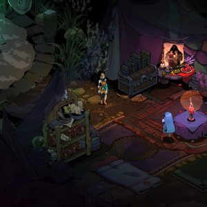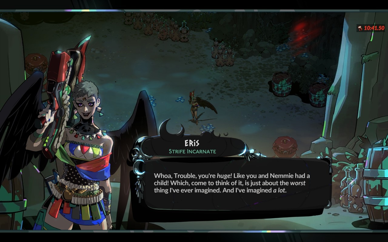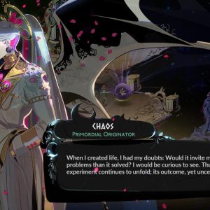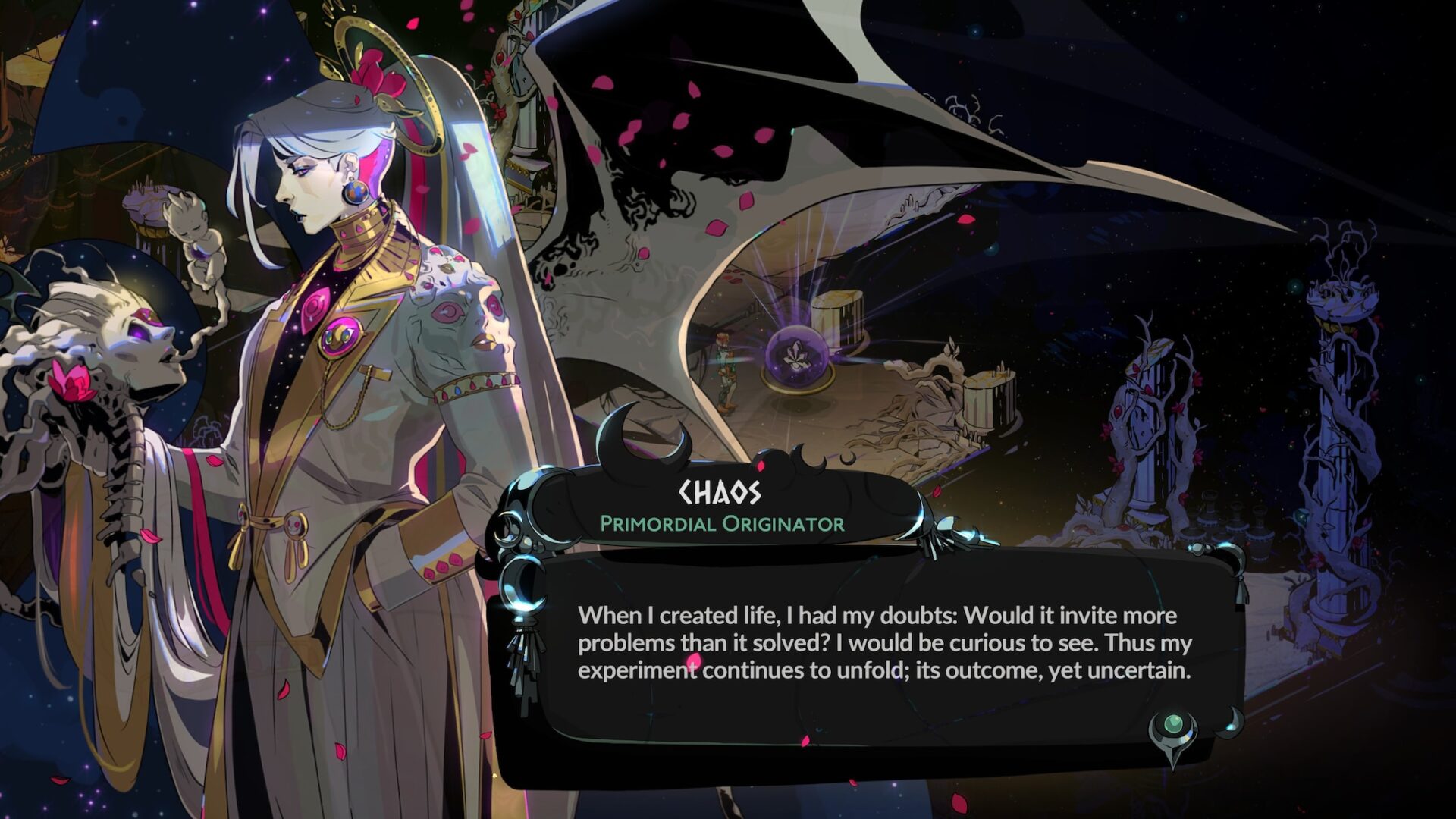 Fata este rece, dar determinată, pentru că scopul ei, uciderea lui Kronos, este singura realitate pe care o cunoaște. În același timp, poate fi foarte caldă și amuzantă, și pe alocuri, simpatic de naivă, mai ales când interacționează cu alte personaje. Zeii în special, au un fel de respect reciproc, un fel de snobism tipic de clasă socială privilegiată, care e interesant de ascultat. De asemenea, câțiva zei noi, câteva surprize neașteptate, pe care nu le voi dezvălui, mi-au câștigat imediat simpatia. Pe de altă parte, este impresionant cât de mult dialog vorbit există în joc, astfel încât după zeci de runde, încă mai descoperi conversații noi cu NPC-urile.