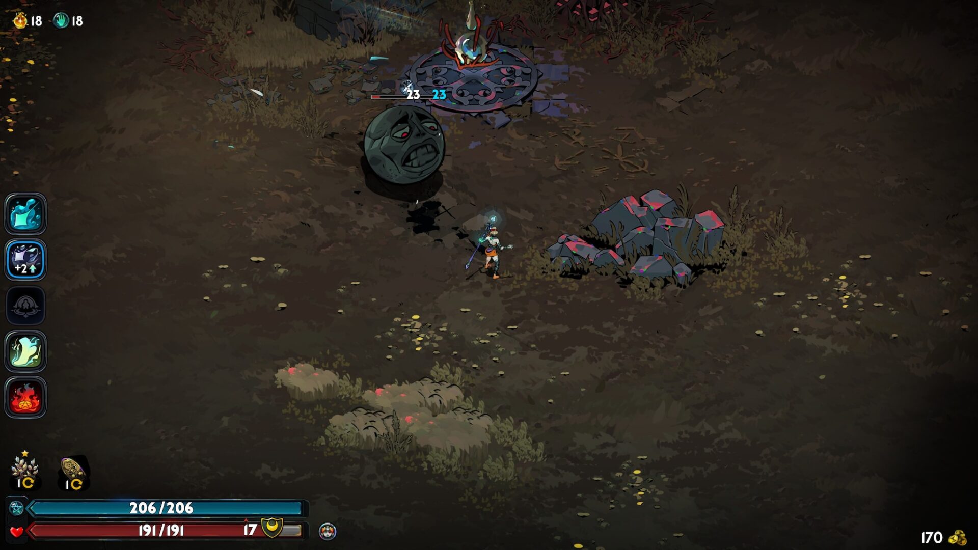 Trebuie menționată și abilitatea nouă, Cast, pe care mulți începători probabil o vor subestima, dar care se dovedește a fi un instrument crucial în anumite situații. E defapt o vrajă ofensivă, care rămâne activă pe sol câteva secunde și, aplică efecte negative și/sau provocă damage inamicilor aflați în perimetrul său. Unele confruntări din Hades 2 sunt destul de haotice (poate chiar majoritatea!) și includ un număr mare de inamici tip carne de tun, care, cu un Cast tip freezing, de pildă, pot fi eliminați în câteva clipe, simplificând mult o situație, de altfel, dificilă.