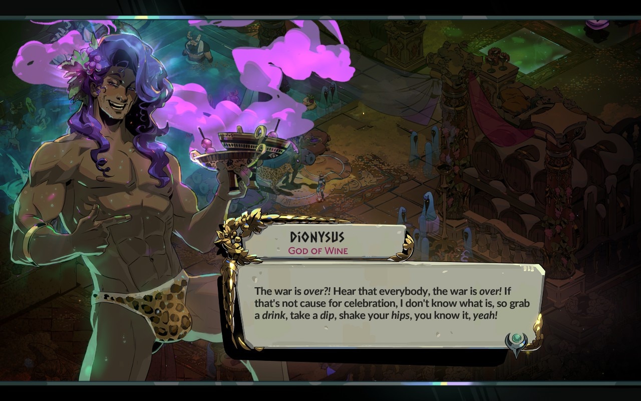 În același timp, există suficient spațiu pentru umor. Dionysus, zeul vinului, se cufundă în aburii alcoolului în timp ce Muntele Olimp se prăbușește în jurul lui, Narcis este complet îndrăgostit de persoana sa, iar în conversațiile tale cu toți acești zei și antieroi, vezi un spectru larg al emoțiilor umane. Îi cunoști tot mai bine și, uneori, chiar începi să îi înțelegi puțin. Acest lucru se datorează și interpretării vocale excelente, în special în cazul lui Melinoë, interpretată de Judy Alice Lee, care a făcut o treabă excelentă.
