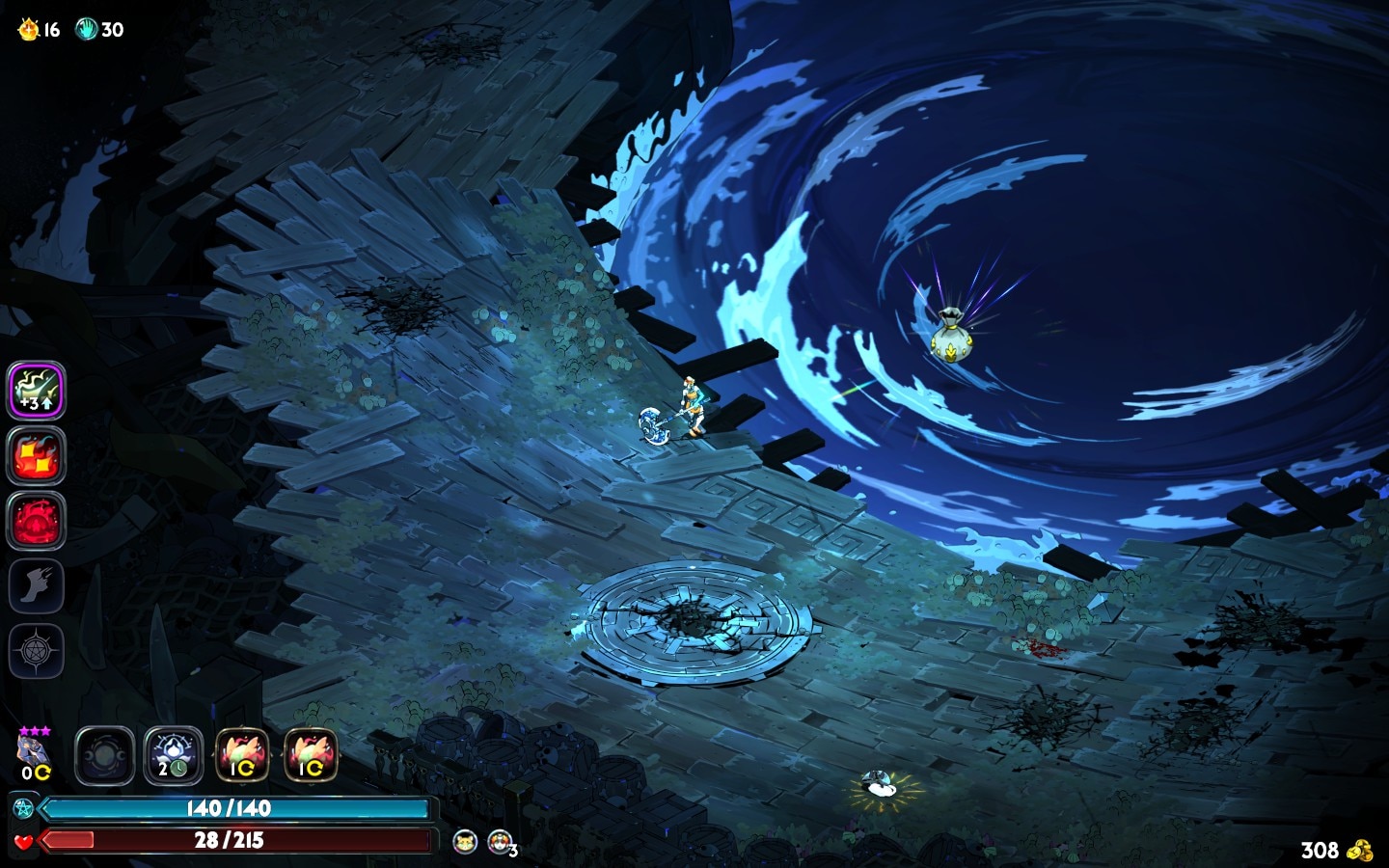 Această experiență fluidă nu e la voia întâmplării, pentru că Hades II se joacă într-un ritm foarte alert. Oricum, fluxul acțiunii necesită o anumită perioadă de acomodare, mai ales dacă faci instinctiv, comparație cu primul Hades. Setul de mișcări al lui Melinoë este mult mai amplu decât cel al fratelui său, dar au fost eliminate anumite aspecte, de pildă double dash, cu care Zagreus făcea slalom printre atacurile inamicilor.