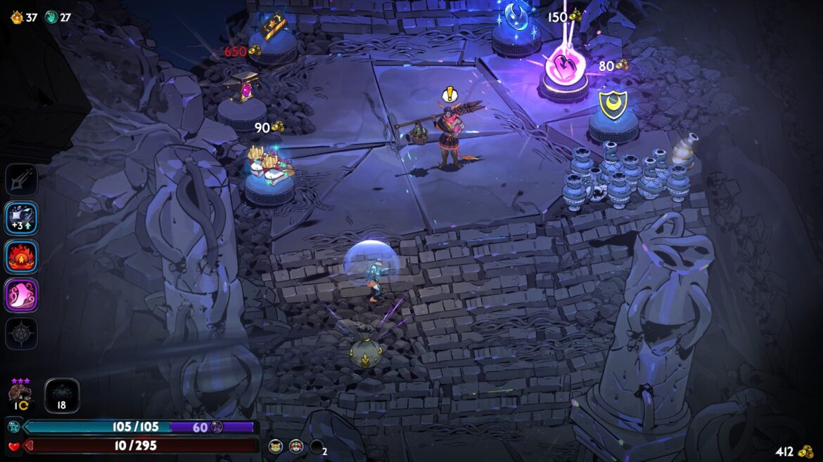 În Hades II există un singur dash, urmat de un sprint. E bine că s-a introdus mecanica de sprint/alergare, pentru că astfel tot poți traversa rapid arenele, dar aceasta trebuie activată prin apăsarea continuă a tastei de eschivă. Acest sprint, folosit tactic, nu doar că îți mărește viteza de deplasare, dar poate avea și efecte ofensive, în funcție de atributele care îi modifică funcționarea, cum ar fi generarea unei tornade la finalul cursei sau o dâră de foc lăsată în urmă care pârjolește inamicul.