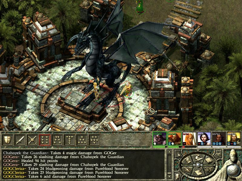 Crearea party-ului în Icewind Dale II este o aventură în sine pentru orice iubitor de RPG! Dacă mai țin bine minte, cred că am petrecut 50 – 60 minute până să pornesc la drum, alegând cu greu între diferitele posibilități de personalizare. Dar, ia să vedem mai în detaliu care sunt clasele. Înainte să ne creăm personajele, trebuie să ținem cont de faptul că avem posibilitatea să înjghebăm un party format din șase figuri, întocmai ca în primul Icewind Dale, așa că posibilitățile de personalizare sunt multiple. Un party bine conceput, care să răspundă situațiilor jocului este o adevărată provocare pentru oricine! La vremea aceea, forumurile gemeau de prezentări ale party-urilor jucătorilor și te uimea evantaiul de posibilități ce și se deschidea. Îți puteai crea un party format din doi fighteri, un mag, doi clerici și un thief, în care clericii pot însănătoși un număr mare de puncte la level superior, ceea ce face ca prty-ul să poată lupte mai mult timp. Cum noul set de reguli oferea o diversificare a fiecărui personaj, ne dăm repede seama că formarea unui grup bine echilibrat reprezenta o adevărată victorie. Mai trebuie spus că, la vremea apariției lui, Icewind Dale II a fost cea mai bună transpunere pe PC a regulilor celei de-a treia ediții AD&D. Orice aspect putea fi ales, începând de la sexul personajului. Pasul următor era alegerea rasei. Aici, însă, apăreau surprizele în comparație cu primul Icewind Dale, căci au fost implementate foarte multe sub-rase. Dacă înainte puteam alege human, acum ne este oferită posibilitatea să fim Aasimar, sau dacă alegem elf, putem opta apoi între trei sub-rase, între care mult râvnita dark elf. Clasele, ca și rasele, au fost mult îmbogățite. În joc, avem parte de apariții surprinzătoare, ca barbarul sau vampirul; spre deosebire de magi, vampirii nu trebuie să învețe nicio vrajă, pentru că au un talent înnăscut pentru artele magiei. Ei pot lansa un număr mare de vrăji dar varietatea acestora este minimă, așa că trebuie să fim atenți să alegem vraja corectă pentru nivelul pe care îl are personajul nostru căci, spre deosebire de mag, magiile vampirului nu pot fi înlocuite în spell book, tocmai datorită faptului că sursa de unde și le „ia” vampirul nu este aceea.