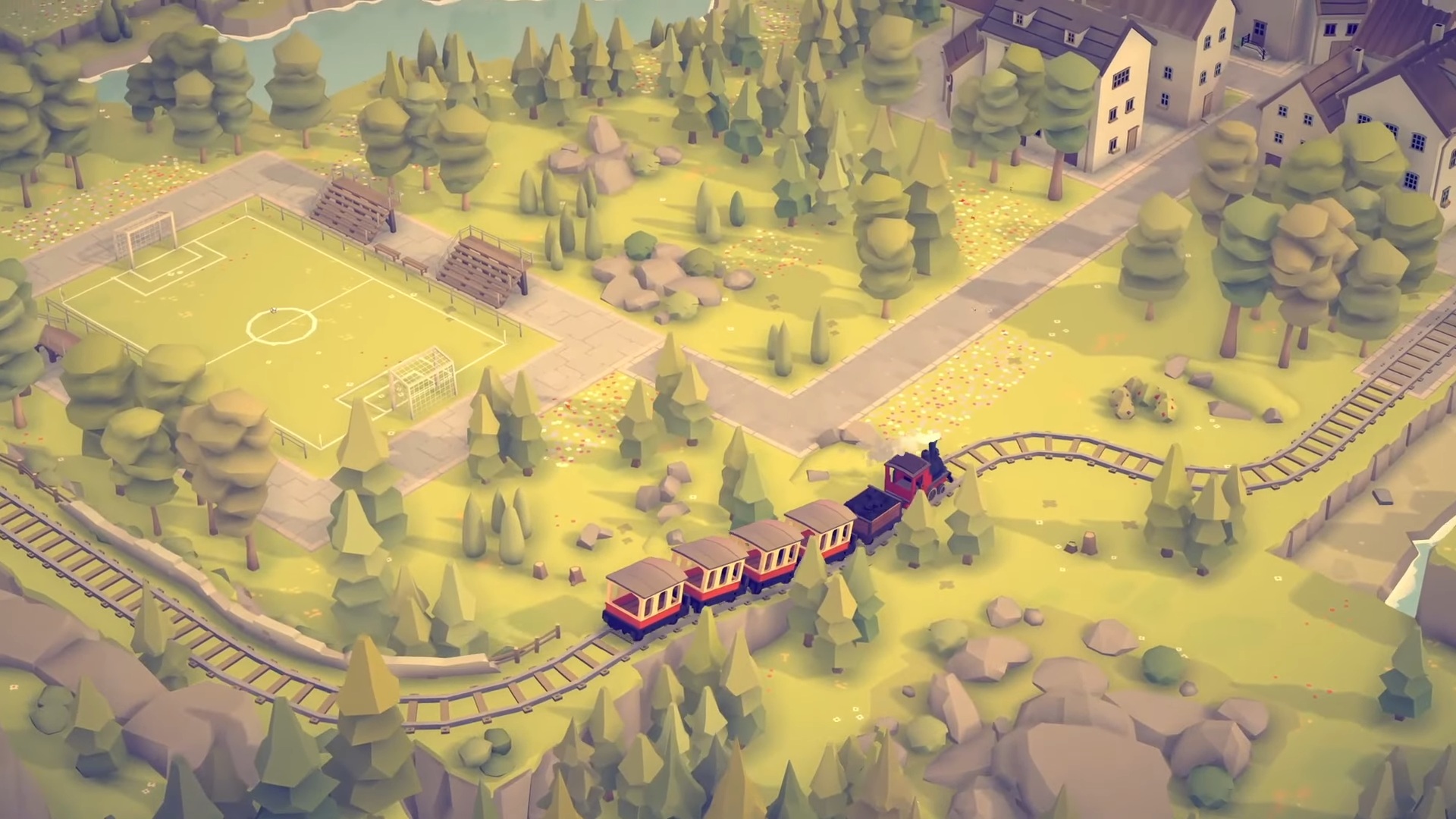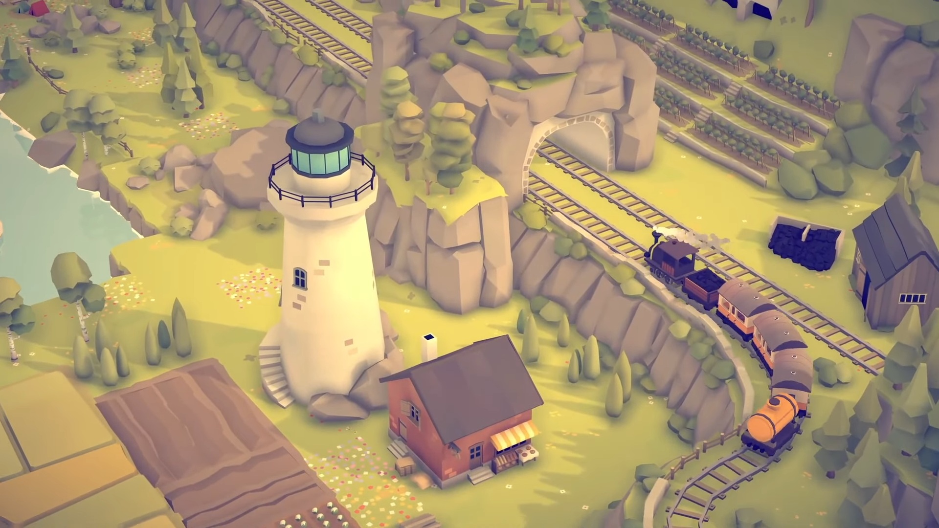 Experiența pe care o propune se bazează pe un concept simplu, dar foarte atractiv. Jucătorul pornește de la o insulă care poate fi generată procedural sau modelată manual. În jurul ei prind contur dealuri, păduri, câmpuri, ape sau așezări mici, toate desenate într-un stil vizual minimalist și colorat. Din acest punct, accentul se mută pe infrastructura feroviară: poți să trasezi șine, să construiești poduri și tuneluri, și să lași trenurile să se plimbe în ritm domol printre peisaje.