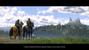 KCD 2 începe exact de unde se termină primul, așa că pentru fanii care se întorc la serie, gameplay-ul se va potrivi ca o mănușă. Veți ști deja tot ce aveți de făcut, totul e familiar, doar că se observă instant că e mult mai puțin jank, de data asta mecanicile sunt mult mai finisate, mult îmbunătățite. De la deplasare la sistemul de combat, la minigames pentru alchimie sau fierărie și diverse alte mecanici, totul se simte ca acasă. Introducerea e extrem de bine făcută și servește ca un reminder pentru cei care au jucat prima parte, cât și pentru a familiariza jucătorii noi ai seriei, așa că dacă nu l-ați jucat pe primul și vreți să începeți direct cu al doilea, și asta e cât se poate de ok, momentele/personajele importante vor fi explicate de-a lungul jocului. Prima regiune în care ne vom aventura este Trosky, o regiune din mijlocul Cehiei, cu câteva sate mici și impozanta cetate cu același nume construită în vârful unor stânci și unde mi-am petrecut cam primele 50 de ore. Protagonistul nostru, Henry, în rol de scutier al cavalerului Hans Capon, moștenitor al lorzilor din Leipa trebuie să îl însoțească pe acesta la cetatea Trosky și să discute cu lordul cetății, Otto Von Bergow pentru a negocia restaurarea păcii în regiune. O să intru un pic în detalii istorice – dar doar un pic, pentru mai mult context vă recomand neapărat lecturarea codex-ului jocului – plin de informații istorice și utile legate de absolut toate aspectele vieții în Europa medievală. Practic, KCD 2 e bazat pe fapte istorice și parte din personaje sunt de asemenea existente, dar cu ceva licență creativă aplicată pentru a face cu atât mai epică povestea jocului.