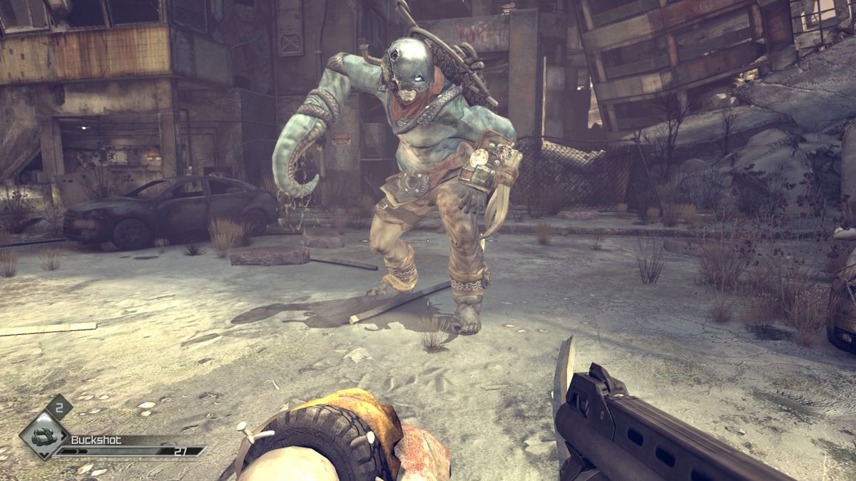 Ceea ce mi s-a părut deranjant atunci și mi se pare și acum, este că atunci când personajul nostru se trezește din lunga hibernare și iese din Arcă într-un decor apocaliptic în stil Mad Max, tot entuziasmul legat de o eventuală poveste bogată și dramatică este rupt în favoarea (și aici mă refer la primul lucru care se întâmplă în nici cinci minute) unei introduceri „brutale” și prea rapide în joc, fiind luat în primire de un individ cu un buggy, apoi ți se înmânează un pistol și ai sarcina să cureți o tabără de bandiți din apropiere. Poți să uiți de întrebările evidente pe care oricine le-ar avea în această situație, ca de pildă „Unde sunt?”, „Ce an este?”, „Cât au mai scumpit ăștia țigările?”. Nu. De la pacient somnoros cu o mahmureală teribilă, la mașinărie de ucis în cinci minute de joc. Acest lucru dă tonul pentru tot restul jocului, în care acțiunea nu cedează niciodată locul unei povești elaborate și, chiar și după 15 ore petrecute în RAGE, toate aceste întrebări nu numai că rămân fără răspuns, dar nici nu sunt adresate măcar.