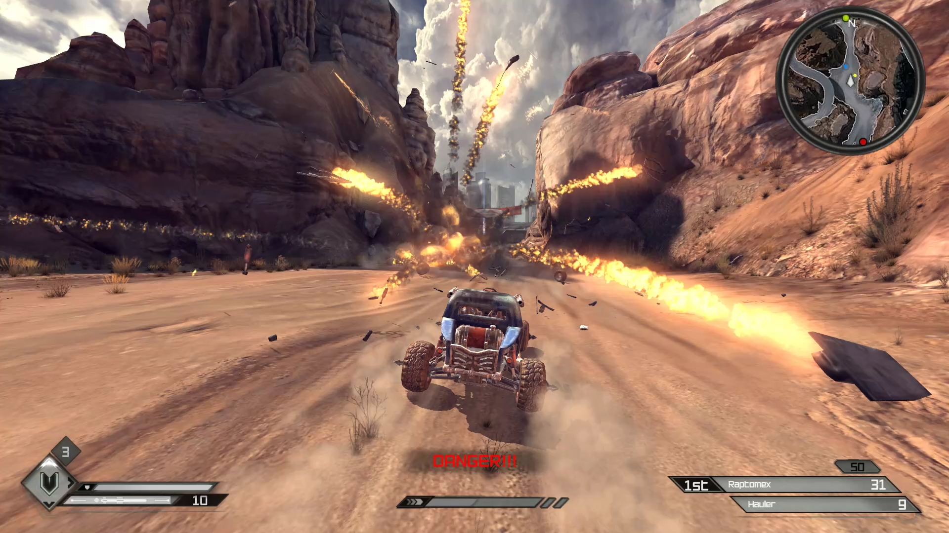 Confruntările automobilistice sunt distractive într-o anumită măsură, dar nu sunt la fel de șlefuite ca partea de shooting. Vehiculele au un sistem aiurea de fizică și comenzi care se simt lente, ceea ce îți lasă senzația că nu ai controlul complet al vehiculului. Faptul că id a decis să includă un sistem de auto targeting este practic o scuză și o admitere că vehiculele se controlează sub standard. Totuși schema de control funcționează ceva mai bine în cursele clasice, unde te concentrezi doar pe direcția înainte, cu degetul ferm apăsat pe tasta de accelerație.