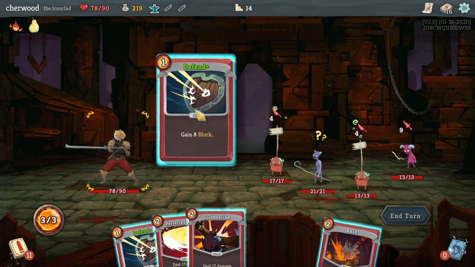 Nu voi intra în multe detalii tehnice, pentru că un rogue-like deck-builder poate fi descris într-o jumătate de paragraf. Alegi o clasă de început, urmezi o potecă anume, cu diferite bătălii și evenimente care îți vor da cărți noi pe care să ți le adaugi în pachet, sau să scapi de cărți nasoale, optimizându-ți deck-ul în tot acest timp. Câteva interacțiuni îți pot aduce diferite bonusuri (în cazul nostru sub forma de artefacte), iar DACĂ ajungi la bătălia finală, poți rejuca această campanie aleatorie pe un grad mai mare de dificultate (20 de grade de difcultate în total, în cazul nostru).