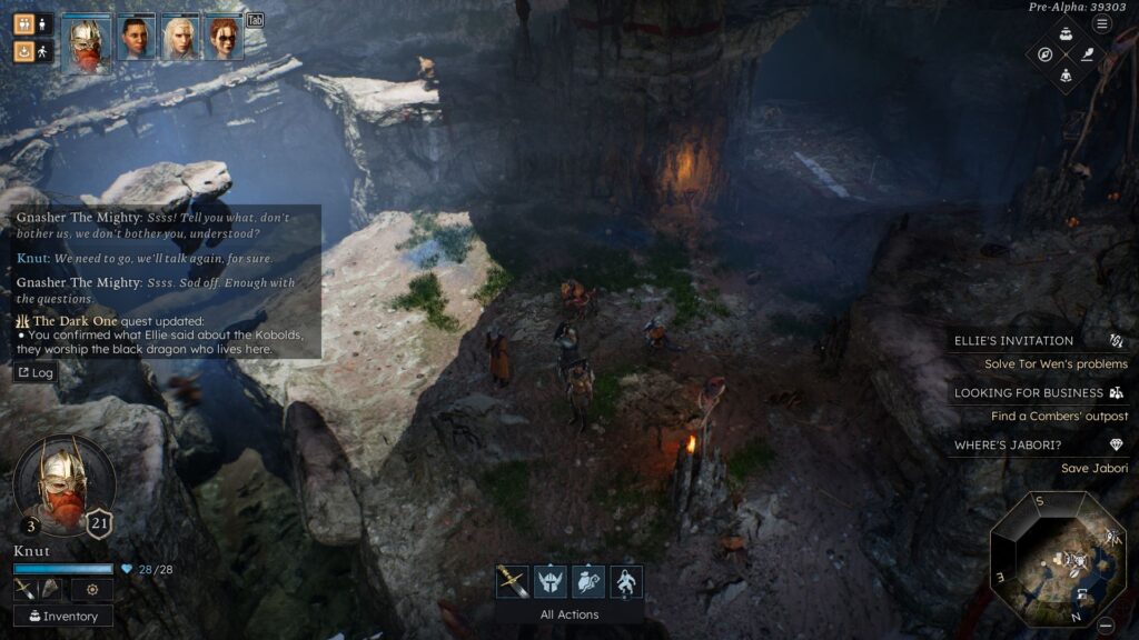 Solasta 2 se face simpatic și prin dialogurile între diferitele personaje, pentru că fiecare membru al party-ului face parte din dialog, fiecare are opțiuni de dialog și abilități ce pot influența desfășurarea acestuia. Atunci când vine vorba să convingi pe cineva, fiecare dintre cei patru o va face în felul lui: fighter/clericul va folosi intimidarea, paladinul carisma, iar halfling rogue înșelăciunea. Mi se pare foarte amuzant să ai o anumită libertate în discuții, fără să mai fii constrâns să mergi doar pe mâna celui mai carismatic membru al party-ului ca să obții un rezultat favorabil. Spre deosebire de Baldur’s Gate 3, în Solasta 2 nu există quest-uri de dimensiuni pantagruelice, în care să aprofundezi povestea până la ultimele semne de punctuație posibile. Narațiunea se bazează mai mult pe NPC-uri, iar conversația cu un personaj important va genera de cele mai multe o adevărată furtună de răspunsuri și de interacțiuni între membrii party-ului nostru. Din ce am văzut până acum, flecăreala membrilor party-ului îți inundă ecranul și auzul în majoritatea timpului, ceea ce poate deveni neplăcut pe măsură ce te adâncești în poveste.