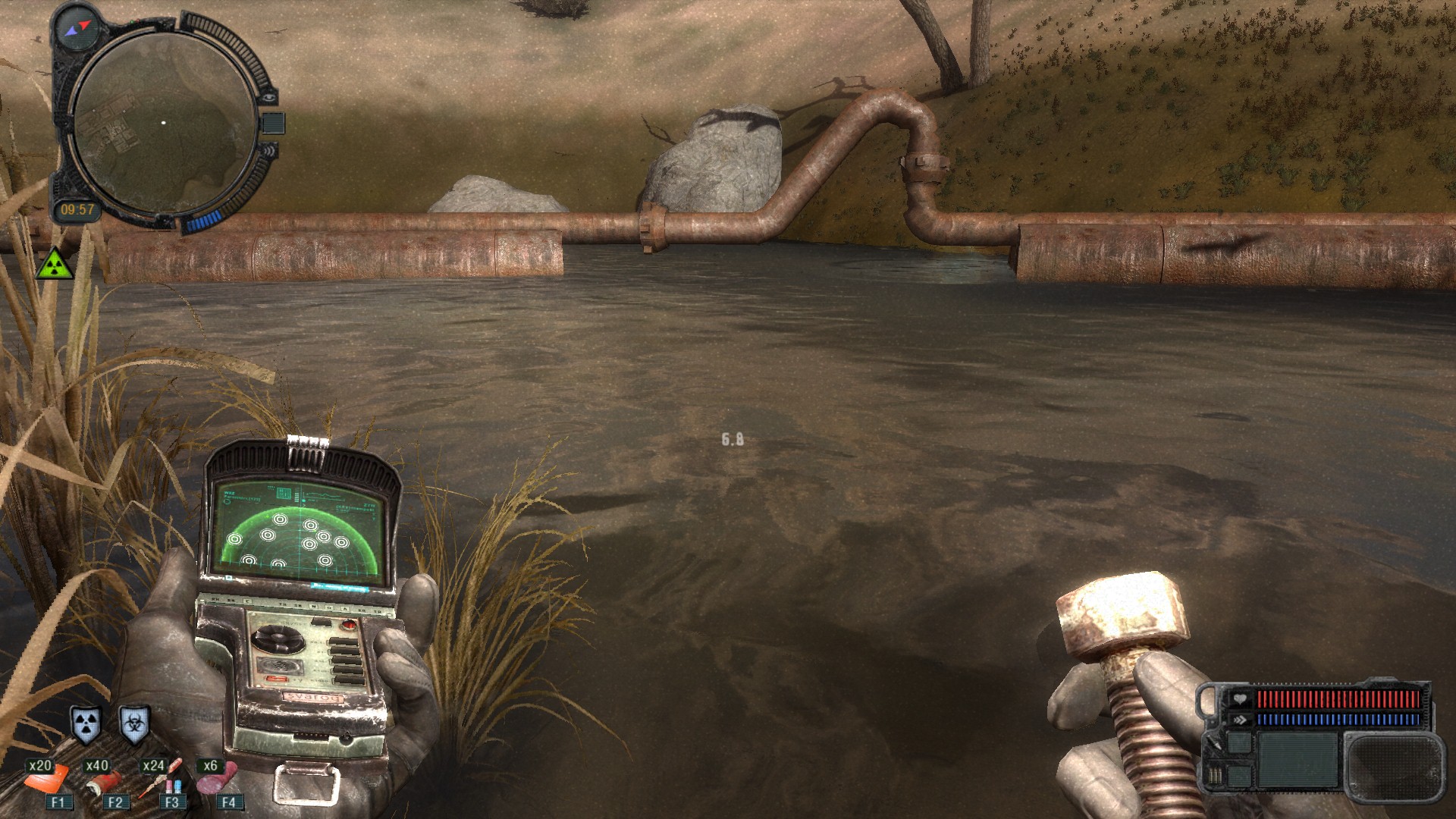 Armele sunt destul de asemănătoare cu cele pe care le-am întâlnit în episoadele precedente: din păcate, primele puști sunt lipsite cu cruzime de precizie și te obligă să tragi în grămadă, iar jocul riscă să devină frustrant încă din start; din fericire, feelingul revine iute, imediat ce îți faci rost de tools. Dacă, însă, nu pui mâna pe rough tools (ălea de salahor, că mai sunt și tools de precizie și de calibrare), poți să te plimbi mult și bine cu milioanele de ruble după tine, pentru că nu vei putea modifica o iotă din tot arsenalul de care dispui. Apropo, dacă nu vă descurcați cu descoperirea acestor tools, căutați pe Gamepressure (http://guides.gamepressure.com/stalkercallofpripyat/) locațiile lor fără nicio jenă.