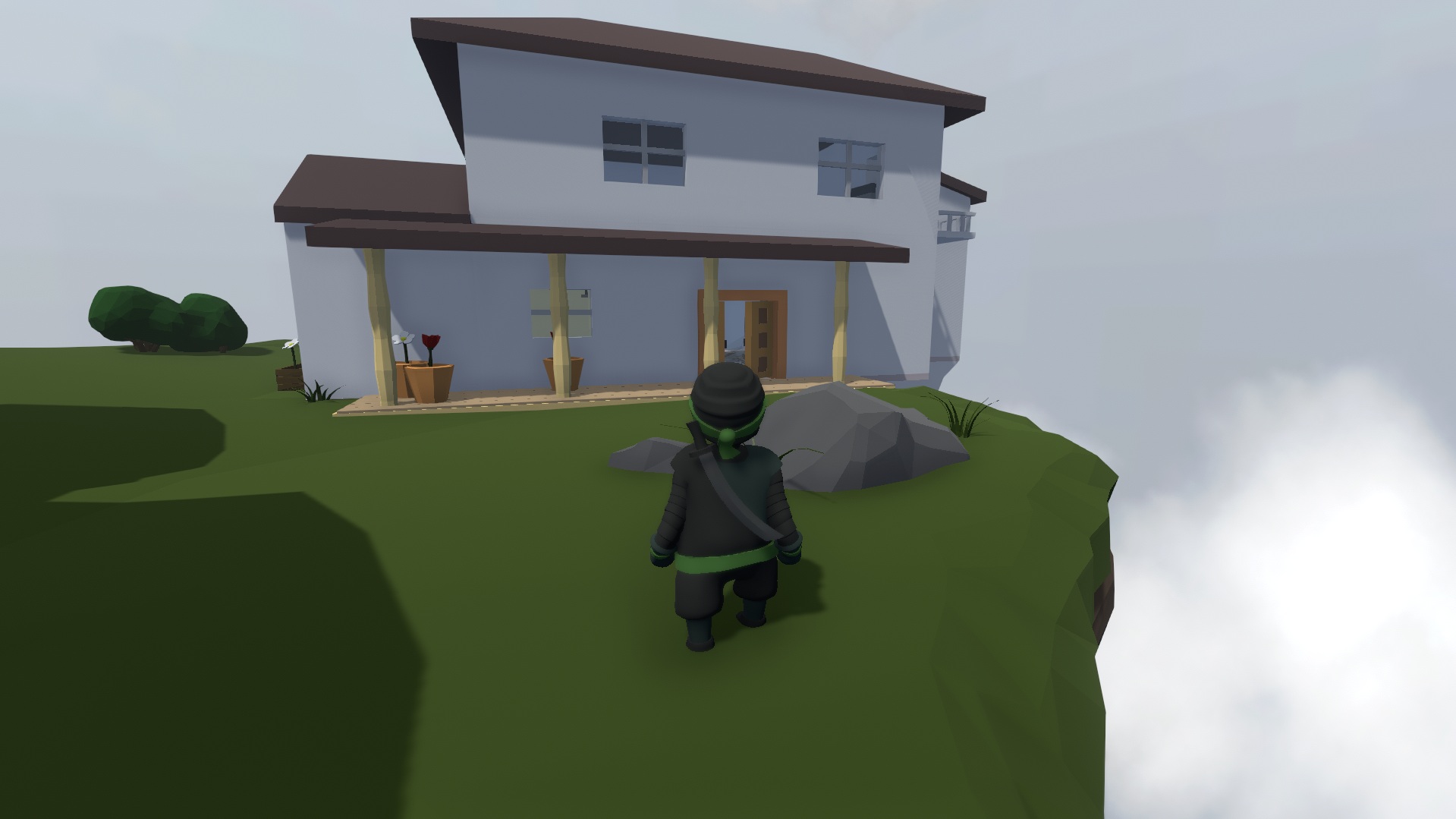 Maică, de ce ai construit așa aproape de margine?Singurele personaje în această lume sunt jucătorii pentru că, da, am uitat să menționez că Human Fall Flat încurajează distracția online alături de până la opt jucători, iar offline, couch co-op style, pentru doi. Am înțeles că există o posibilitate ca patru jucători offline să joace simultan, fiecare doi împărțind câte un personaj, dar cred că vă dați seama de efectul amuzant și deloc productiv al acestui lucru. Totuși, este de încercat și această variantă, asta dacă reușiți să faceți lucrurile să meargă în așa fel de la început.