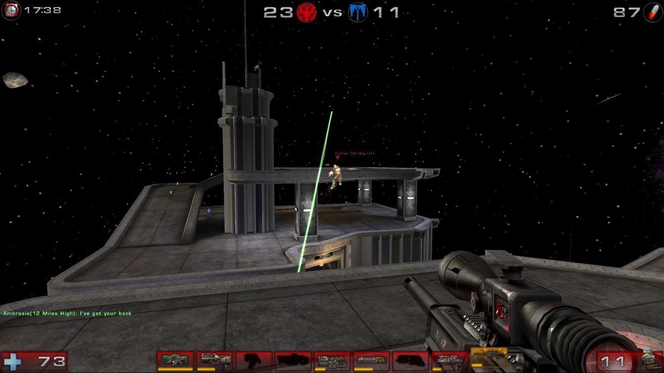 Și ce frumos a îmbătrânit jocul ăsta! Ritmul e absurd de rapid comparat cu shooter-ele moderne în care alergi 5 minute ca să găsești vreun adversar pe hartă, apoi te elimină careva cu o armă cu skin roz neon. În UT2004, dacă stai pe loc mai mult de trei secunde, e deja prea târziu. Fie faci frag-uri, fie devii spectator, și nu există cale de mijloc.