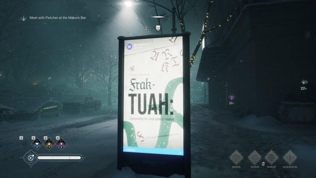 Din momentul în care intri în joc, simți ceva ne-la-locul-lui. Muzica ambientală pare interesantă dar când începi jocul, ești lansat direct într-o cinematică-in-game, fără nici un ecran de creare al personajului, fără să împarți skill-uri de start niciunde, fără nimic. Ok. Bizar și suspect, dar ok. După ce-i dăm omorul unui gardian public sau ce-o fi, suntem lansați în universul Vampire: The Masquerade, în straie de Unreal Engine 5. E primul joc UE5 care merge pe Ultra pe calculatorul meu învechit, dar asta tot nu ne scapă de crash-urile destul de frecvente când îl jucam pe laptopul cu Windows. Pe computerul învechit rulez Linux și am avut crash-uri mai puține. Dar e ok, autosave-ul este destul de generos, așa că nu mi se pare un capăt de țară.