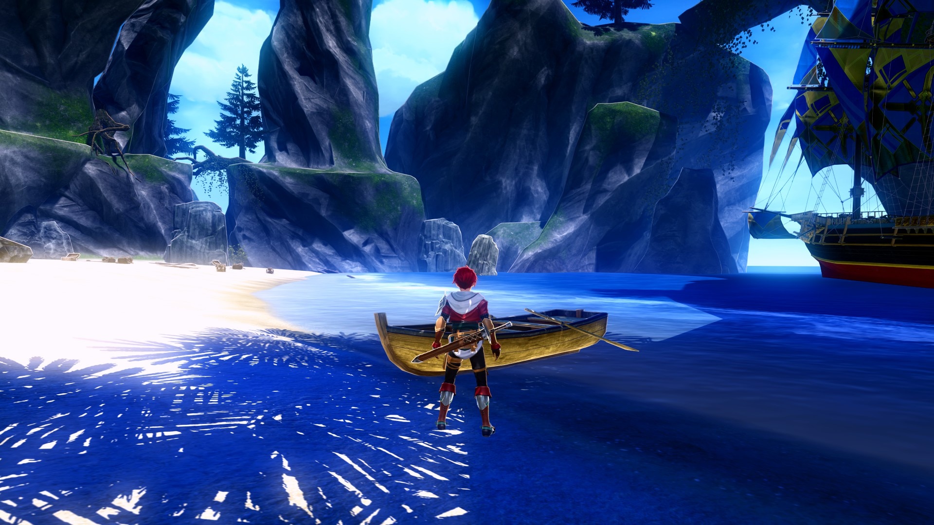 Pentru prima dată într-un mod cu adevărat consistent, aventura lui Adol Christin nu se desfășoară doar pe continente și prin dungeon-uri, ci și pe mare. Nava Sandras funcționează ca un hub mobil pentru întreaga aventură, fiind un element central al gameplay-ului. Pe măsură ce explorezi arhipelagul și descoperi noi insule, Sandras devine baza ta de operațiuni. De aici pornești în explorare, aici revii după misiuni și tot aici îți gestionezi echipajul și upgrade-urile.